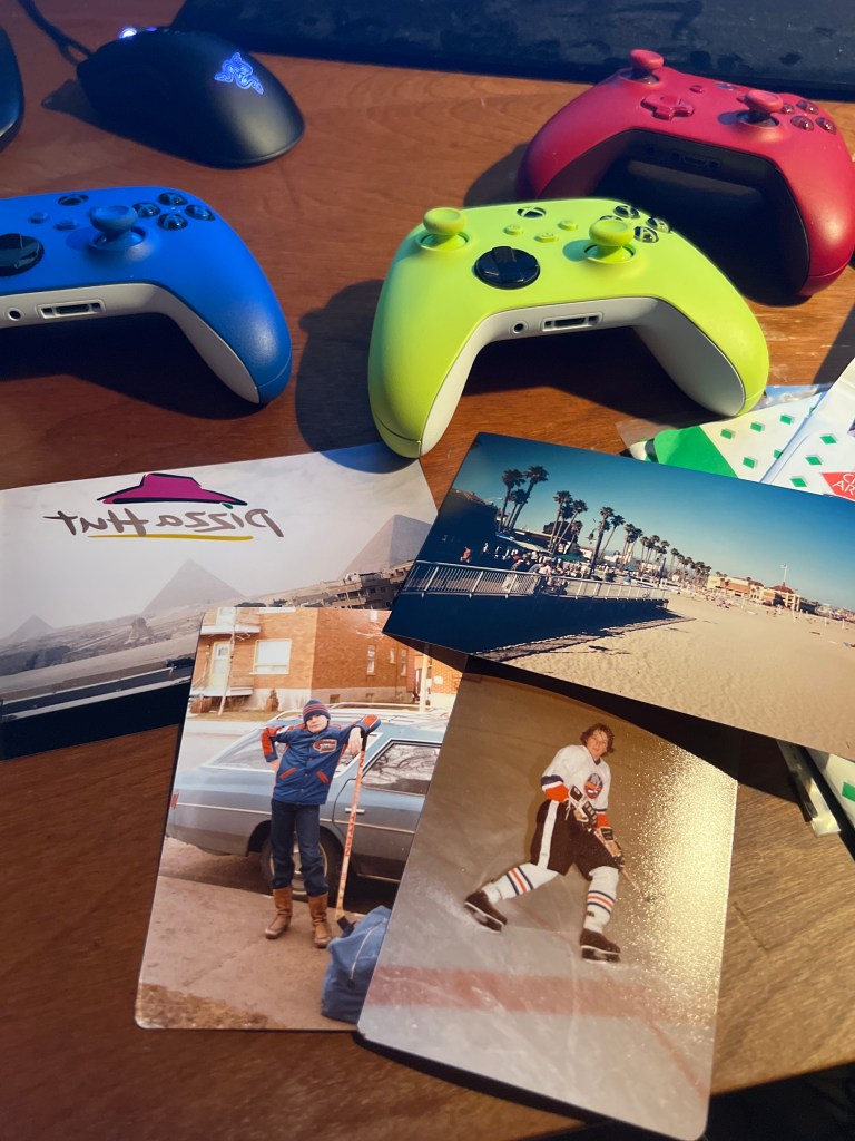 Vous avez le droit de tisser un noeud et ou une perle avec n’importe quelle carte, même vos vielles cartes de Hockey pour en faire des petites symphonicités sincères, naturelles et authentiques comme ce ti cul qui embarque dans un vieux char bleu pour aller peut-être au prochain tournoi Pi WeFree , qui sait…