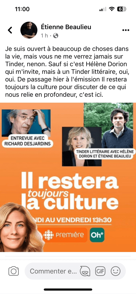Nâoubliez pas dâaller voir ce soir Ă lâimpĂ©rial la forĂȘt borĂ©ale entre Richard Desjardins Chip Chop et Chopin:)